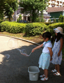 シャボン玉を作ってあそびました!